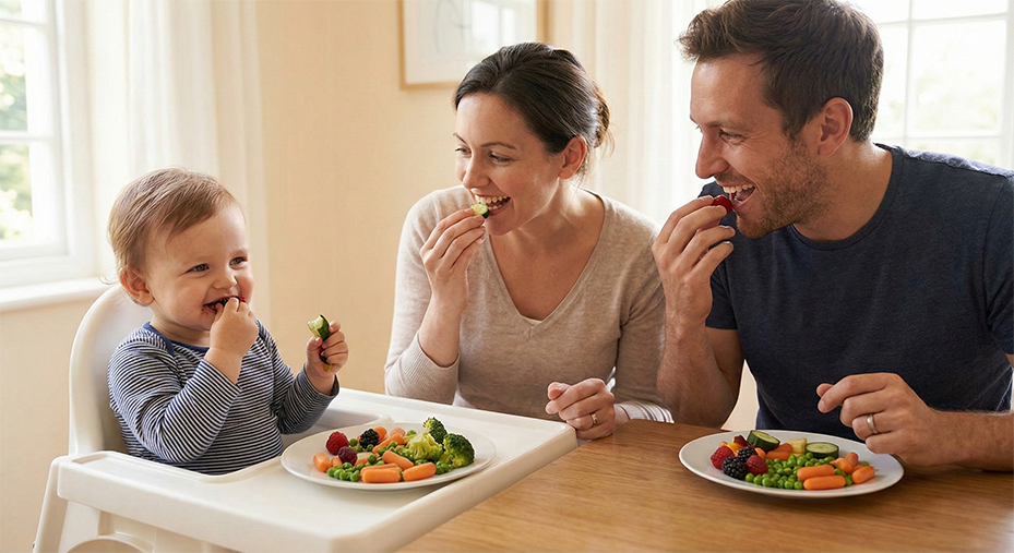 Children learn by mimicking adults. If they see you eating and enjoying a variety of healthy foods, they are much more likely to try them. Make the dining table a screen-free zone—turn off the TV and put away smartphones to focus on conversation and the food.